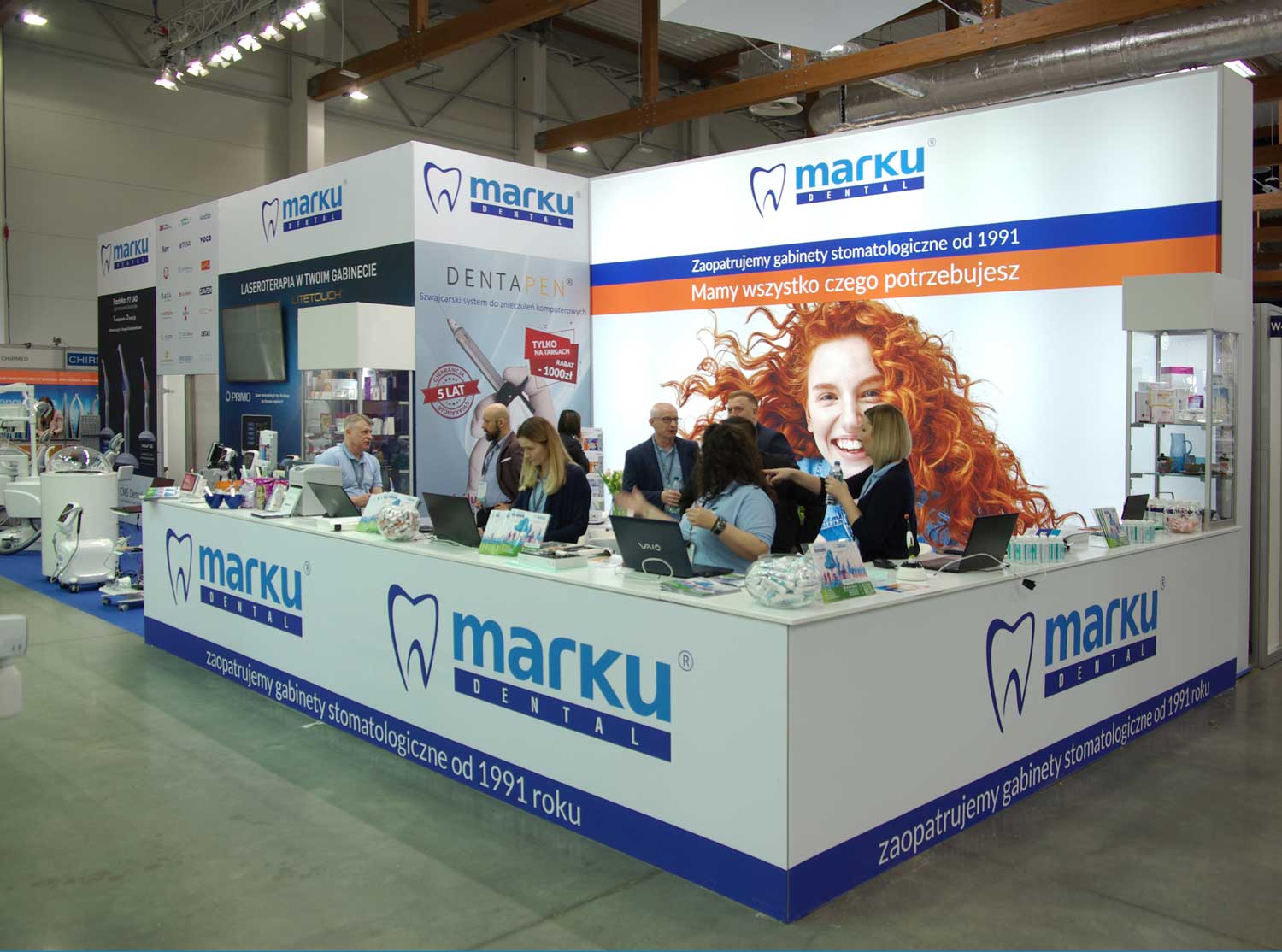 targi Krakdent szczęśliwie dobiegły końca. Niniejszym chciałabym podziękować Państwu za realizację naszego stoiska. Współpraca przebiegła płynnie, bez niespodzianek i problemów. Jesteśmy zadowoleni zarówno z przebiegu samego procesu projektowania, realizacji jak i z efektów Państwa pracy. Stoisko wyglądało tak, jak chcieliśmy – starannie wykonane, estetyczne i efektowne. Dziękujemy również za sprawny, sympatyczny i co najważniejsze skuteczny kontakt operacyjny na etapie przygotowań i budowy. To miało dla duże znaczenie dla naszego komfortu pracy. Szczególnie dziękujemy Pani Renacie Karpecie oraz Panu Markowi Stawowemu, z którymi mieliśmy przyjemność osobiście współpracować.